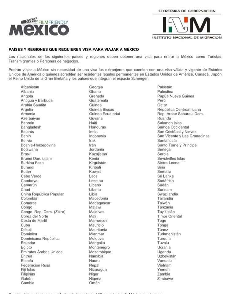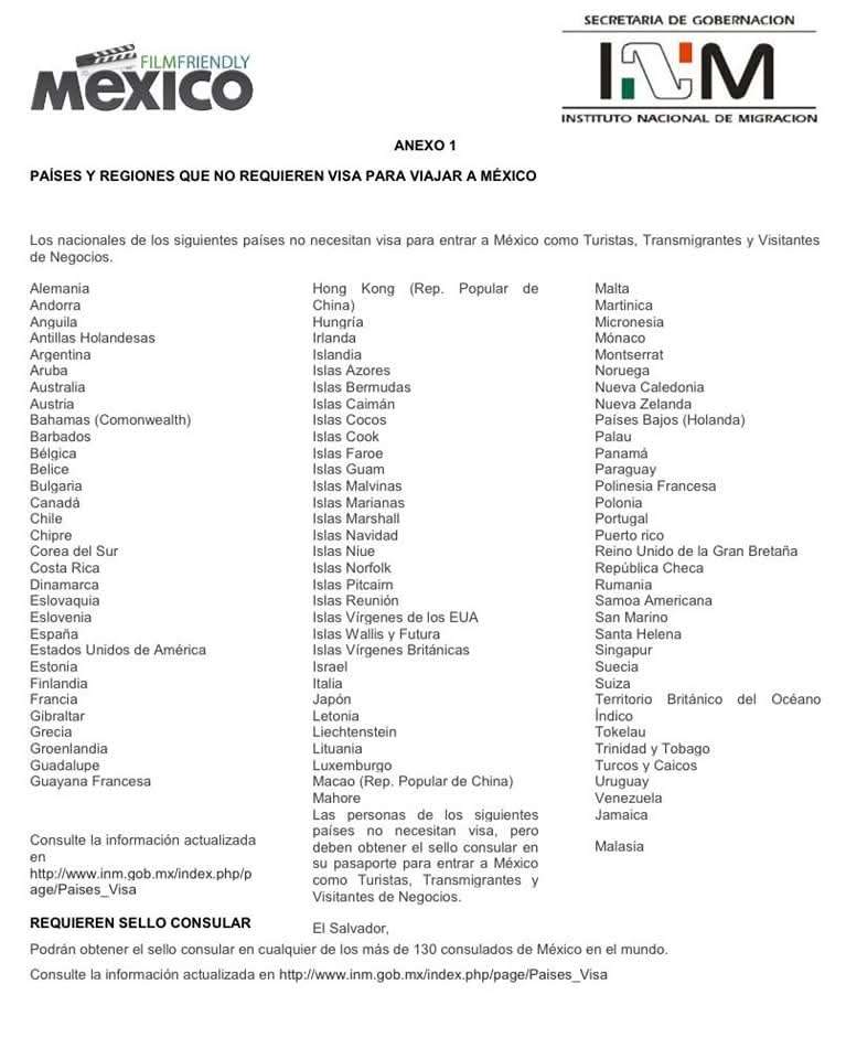 PAÍSES Y REGIONES QUE NO REQUIEREN VISA PARA VIAJAR A MÉXICO Y PAÍSES Y REGIONES QUE NO REQUIEREN VISA PARA VIAJAR A MÉXICO.