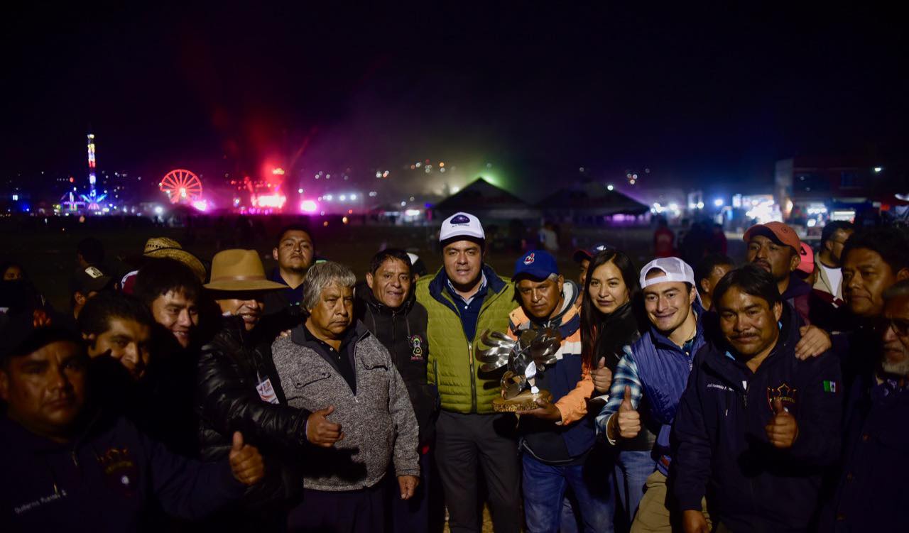 Entre algarabías, gritos y porras el edil Oscar Sánchez acompañó a los artesanos que se dieron cita en tan importante evento con la finalidad de demostrar la tradición y cultura de su municipio, muestra de ello y de sus esfuerzo fue que lograron obtener el primer lugar en este concurso que contó con la participación de artistas pirotécnicos de diferentes municipios y estados de la República Mexicana.