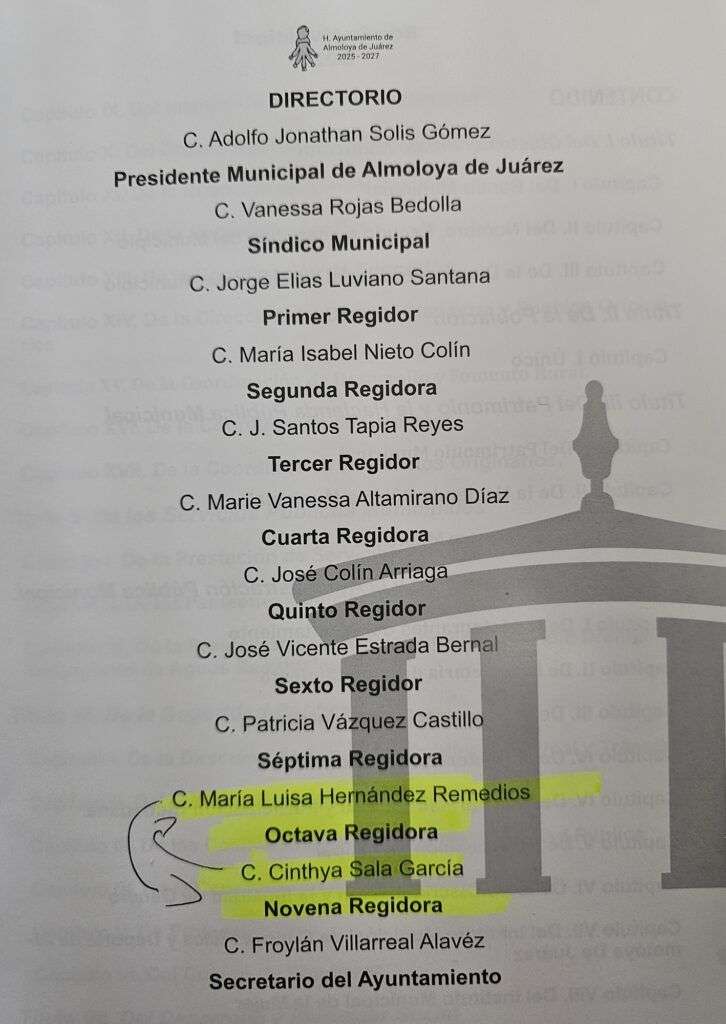 Errores garrafales en el supuesto Bando Municipal: cambios de cargo a regidoras.