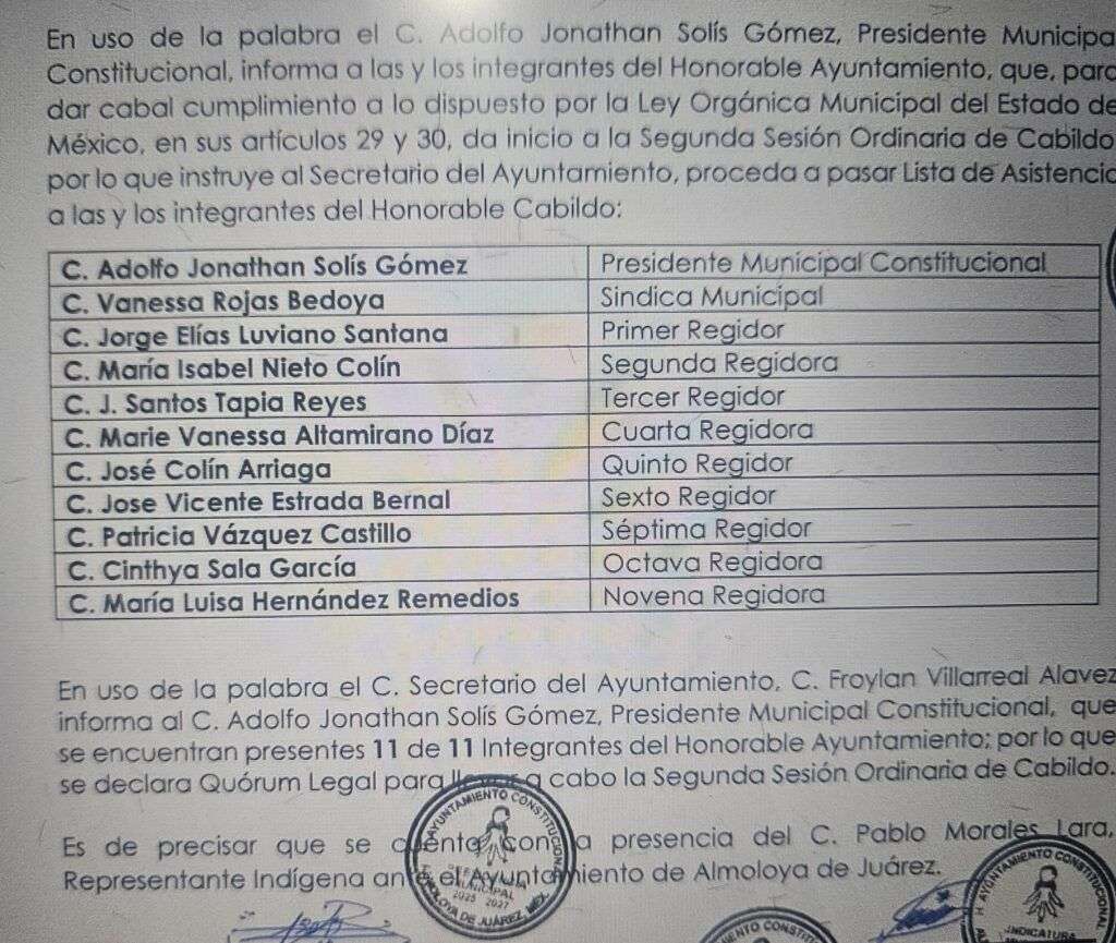 En un evento exclusivo y reservado, Adolfo Jonathan Solís Gómez presentó el nuevo Bando Municipal. Sin embargo, el acto estuvo marcado por errores significativos, como el cambio de cargos entre regidoras. Por ejemplo, María Luisa Hernández Remedios, quien ocupa el cargo de novena regidora, aparece en el Bando como octava regidora, mientras que Cinthya Sala García, originalmente octava regidora, figura ahora como novena.