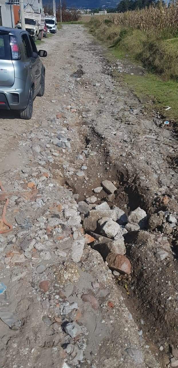 Los vecinos manifiestan que este camino ya cuenta con zanjas, y con un alto riesgo de que las personas que caminan por este camino se lleguen a lastimar, la semana pasada estaba trabajando la maquinaria en una construcción que tiene el director de obras públicas en la misma calle, por eso la inconformidad, de que para la ciudadanía no hay maquinaria.
