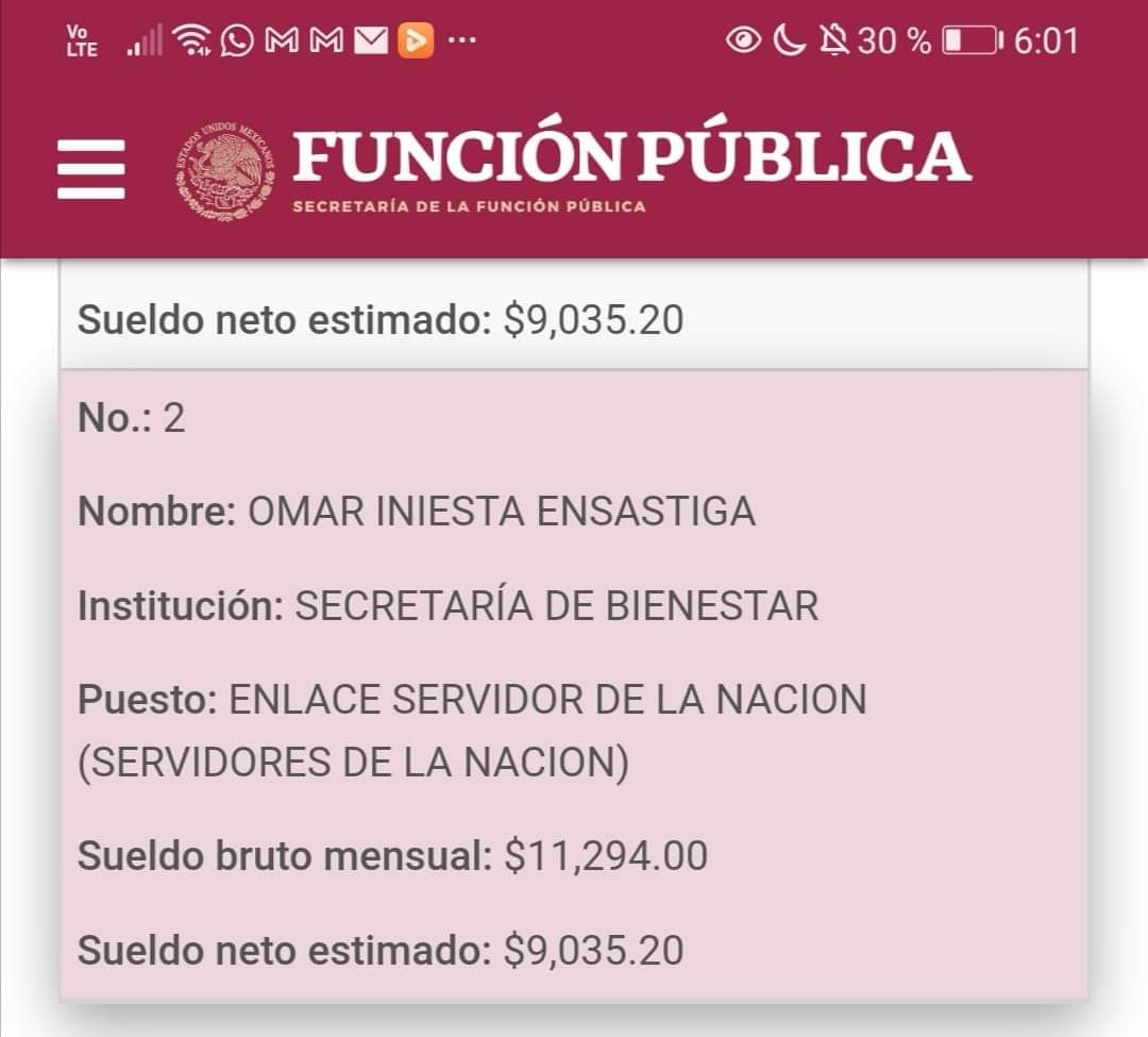 Estos servidores de la nación han manifestado a quien escribe que el ” flamante super” delegado sigue incurriendo en anomalías y el mismo los protege, ahora está el caso del servidor federal Omar Iniesta Ensastiga, que gracias a las recomendación de su patrón está cobrando en el Ayuntamiento de almoloya de juárez, y no sólo eso, este es el protegido de Hugo Espinal el Cual tiene un vehículo oficial del gobierno federal, para sus dizque respectivos trabajos como servidor de la nación, mientras otros de sus compañeras y compañeros tienen que andar de sol a sol y en sus dos pies porque ni para sus pasajes les dan, pero no fueras un incondicional de Hugo Espinal porque entonces si cuentas con muchos preferencias.