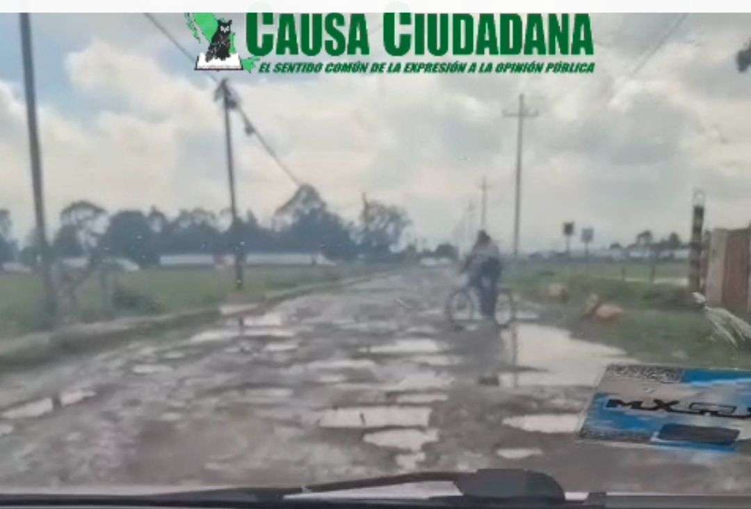 Almoloya de Juárez, Méx. – Hoy en día, salir con una hora de anticipación para llegar a cualquier destino dentro del municipio no es exageración, es necesidad. Y es que, aunque parezca una broma, los caminos de Almoloya de Juárez se encuentran en condiciones tan lamentables que uno pensaría que Estados Unidos se equivocó de objetivo y bombardeó parte del territorio municipal.