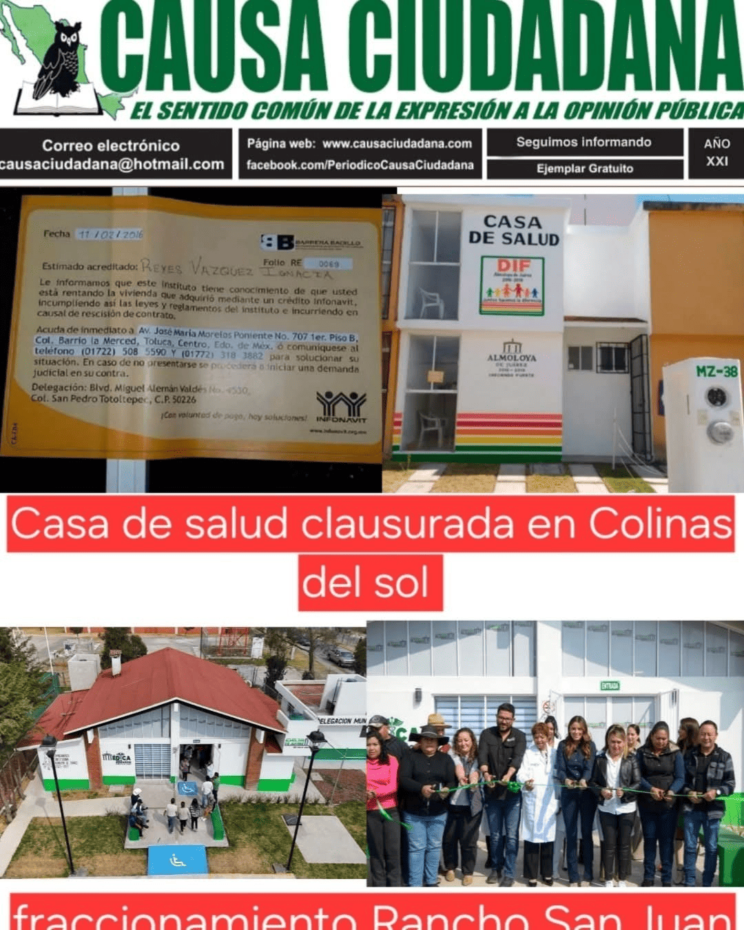 En ese entonces, la llamada Casa de Salud fue clausurada por el #INFONAVIT apenas semana y media después de haber sido inaugurada.
